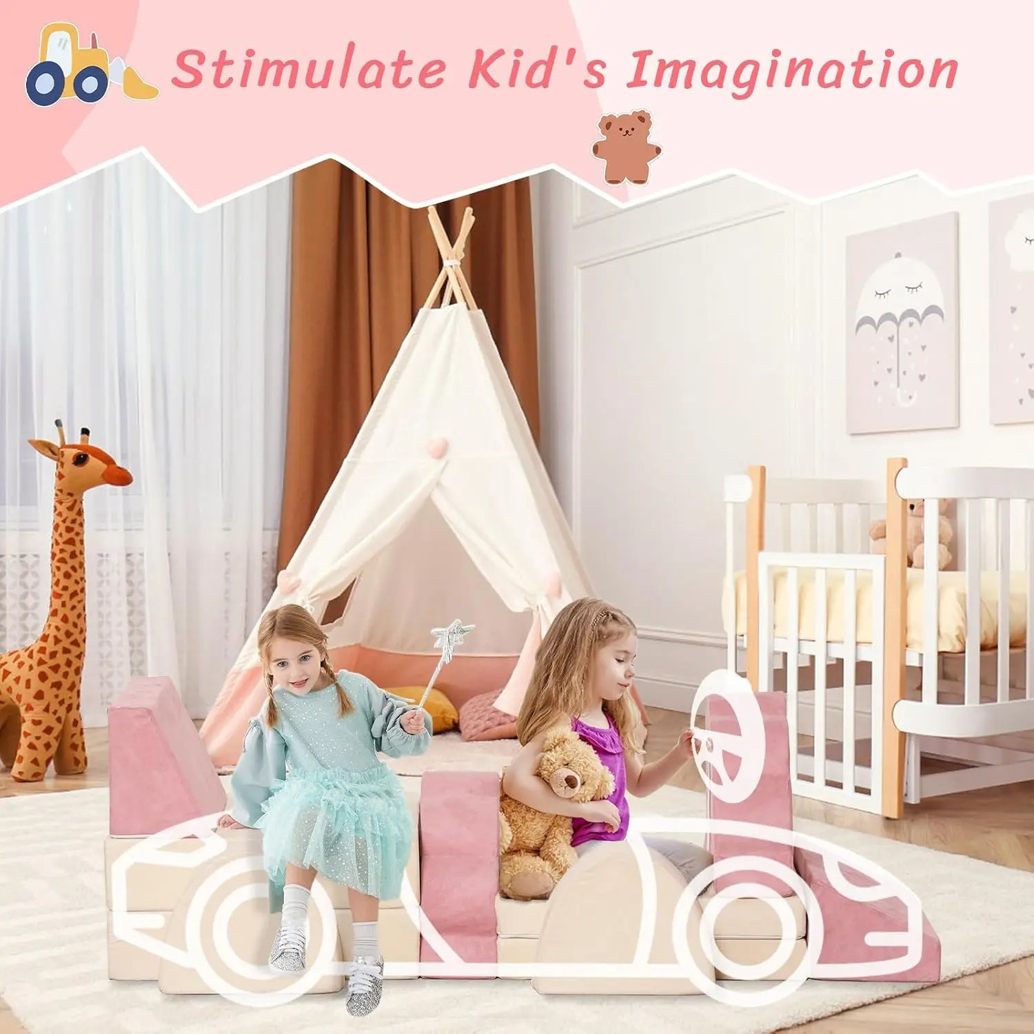 Kids Play Couch 10PCS High Density Foam Sectional Sofa for Toddlers, Pink